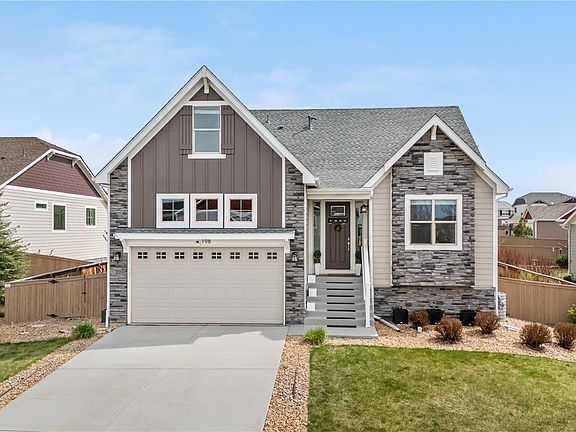 Welcome to 198 Calhoun Circle, a beautifully upgraded small batch built home nestled in the heart of Castlewood Ranch in Castle Rock, CO. The main level features sleek, non-toxic German-engineered white plank flooring that brings an airy, modern feel. The spacious kitchen boasts stainless steel appliances, a center island, and ample cabinetry—ideal for home chefs and entertainers alike. Step outside to your private backyard Orchard with 23 fruit baring bushes & 16 fruit trees! Along with a large custom concrete deck provides the perfect setting for relaxing & entertaining. The yard is enhanced with low-maintenance turf, a full garden area with 6 raised flower beds, and thriving fruit trees—offering beauty, function, and sustainability.