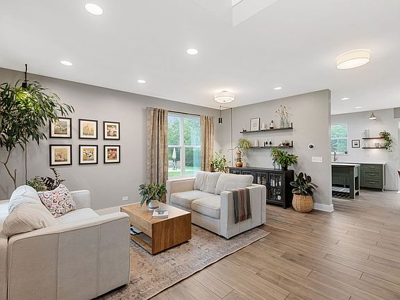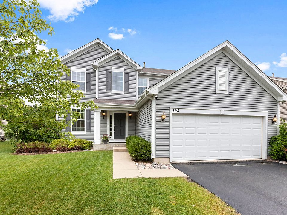 Lancaster Falls unveils a custom design that defies logic with its remarkable floor plan to brilliant finishes and private oasis yard, all while backing to Kettle Grove Forest Preserve. Upon entering an open concept with 9' ceilings allures guests to a gorgeous living room with sprawling windows, and porcelain tile made to look like hardwood floors while leading the way to a generous dining room. The dining room is conveniently located off the exquisite eat-in kitchen. The kitchen was designed and built by Wilderness Wood Working with 42" custom inset cabinets featuring soft close and dove tail features, quartz counters, floating shelves, high-end 4-burner Wolf Range, commercial grade exhaust, Bosch dishwasher, and a generous island overshadowing the eating area. The eating area is complimented with 9' sliders to the all-new Unilock patio while the opposing side is open to the family room. The family room showcases sprawling windows, and custom built-in bookshelves on each side of the fireplace. The main floor also offers a beautiful laundry room with a locker system for shoes and coats and a stunning office with French door access and built-in bookshelves complimenting the oversized window. The 2nd floor is equally as impressive with 4 bedrooms each with engineered floors and 2 full bathrooms. 1 of 4 bedrooms is a primary suite with custom walk-in closets and organizers as well as direct access to the primary bath. The primary bath is finished with double vanities, single shower, soaking tub and incredible tile selections. The remaining 3 bedrooms share a full hallway bathroom with single vanity and shower/tub combination. Finished lower level with phenomenal ceiling heights, built-in cabinets, sink, dog wash and epoxy floors! Perfect for a gym, recreation area or media room. The landscaping was professionally completed using Unilock pavers, stone columns with strung lights, 2 gardens, hot tub and so much more! 2-car attached garage! Easy access to picnic grounds, park and trails.