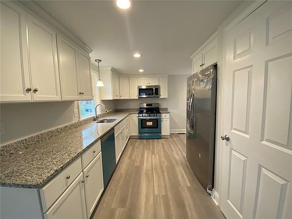 Completely renovated ranch home on corner lot in desirable Eden Park neighborhood. Two minutes from Garden City Shopping Center. New roof, windows, insulation, plumbing, heating and central air condition systems, 150 amp. electrical service and wiring. Vaulted ceilings in the living room with recessed lighting. Red brick hearth fireplaces 1 in living room and 1 in unfinished basement. Kitchen features white cabinets and granite countertops. All new stainless steel appliances in kitchen (Refrigerator, gas oven/range, dishwasher, and microwave). New cobble stone border, asphalt driveway and cobble stone bordered front walkway. Water Views to Blackamore Pond.