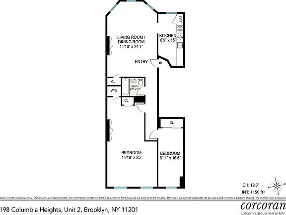 This 1150 square foot apartment home has 2 bedrooms and 1.0 bathrooms. This home is located at 198 Columbia Hts APT 2, Brooklyn, NY 11201.