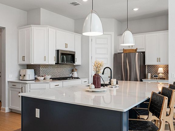 Welcome to the good life in the Texas Hill Country, where modern luxury meets farmhouse comfort with undeniable style! Built in 2023, this 3,414 square foot home blends clean gabled rooflines, crisp board-and-batten siding, and warm wood accents for a look that feels both timeless and fresh. Inside, it’s all light, warmth, and wow. Vaulted ceilings and walls of windows fill the living room with sunshine, while a sleek linear fireplace adds polish and comfort. The kitchen is pure perfection with double ovens, quartz countertops, gleaming white cabinetry, designer brass hardware, and lighting that makes the whole room glow. Whether you’re cooking, hosting, or simply admiring the view, this space knows how to impress. With five bedrooms and four bathrooms, the layout is both spacious and smart. The primary suite feels like a five-star retreat with a spa-inspired bath featuring marble-look tile, a glass-enclosed shower, and calming neutral tones. Over $90,000 in Design Center options ensure every finish feels elevated, while thoughtful touches like a RO water filtration system and two EV chargers bring convenience to everyday life. This resort-style community features a stunning pool with water playscape, a full fitness center, croquet lawn, ball fields, and nearly eight miles of scenic trails. Plus, your HOA fee includes Spectrum TV and Internet for easy living. Located within highly rated Dripping Springs ISD and the new Wildwood Springs Elementary, this home offers the perfect blend of sophistication, small-town charm, and Hill Country beauty. Just a short drive from Austin, it’s a place where modern design and relaxed living come together beautifully. Don’t just dream about Hill Country living—make it yours. Homeowner is Agent!