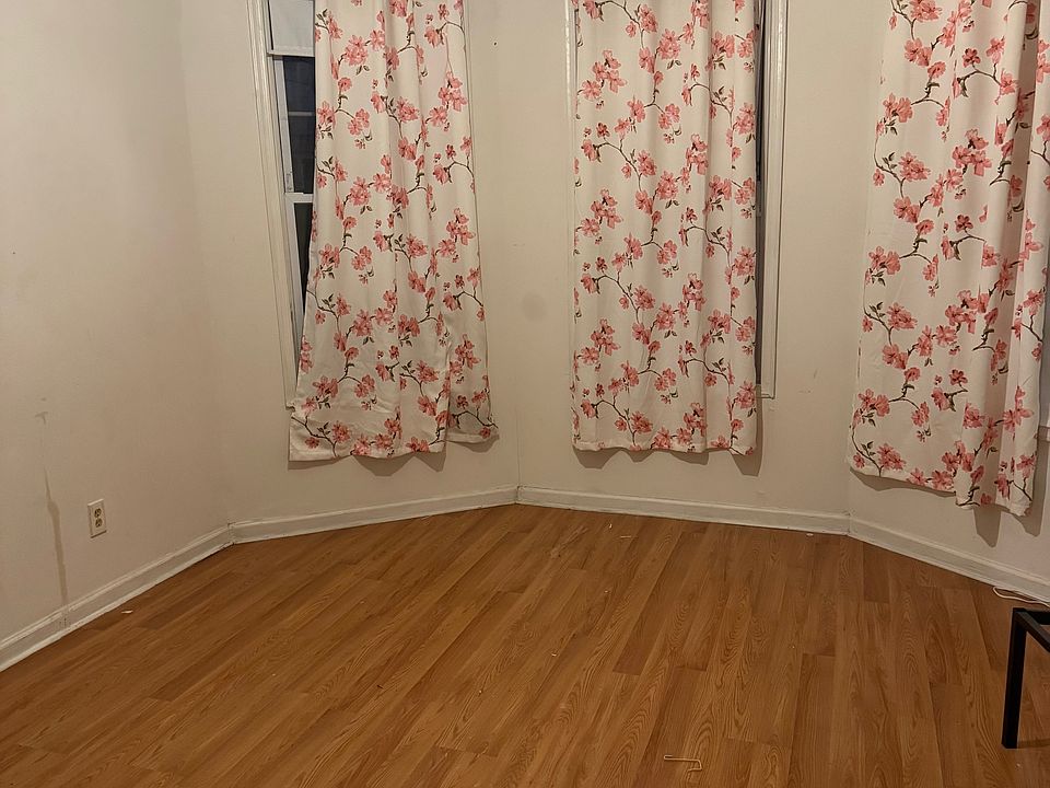 First floor apartment with 3 bedrooms, one bathroom, nice size Living room and a extra room in the back that can be used as an office or a playroom. Tenants are allowed to use the back yard.