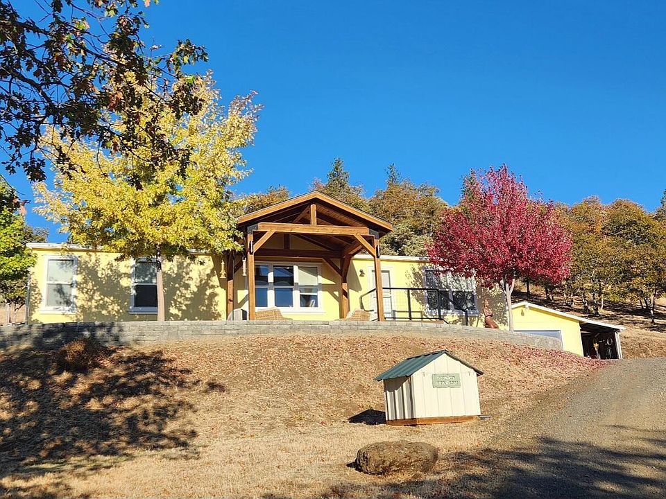 Wake up to postcard-perfect views of Mt. McLoughlin & the Rogue Valley from this well-maintained home on 7.32 acres bordering BLM land. With an open, airy floor plan that lives larger than its 1,404 sq ft, the home features vaulted ceilings, abundant natural light & spacious rooms. Private gated entry at the end of the road. Property highlights include a detached garage/shop, 2 full RV hookups, cedar-beam covered patio, hot tub pad & fenced garden. Major system updates in the last 6 years include: NEW roof & gutters, water heater & softener, septic pump, well pump & generator switch. The property also includes a well with 1,500 gallon holding tank. This is a rare combination of spectacular views, a well-maintained home with recent upgrades, open, comfortable living spaces, a large primary suite, acreage, detached shop, & full RV hookups — all just minutes from the conveniences of Eagle Point and a short drive to Medford.
