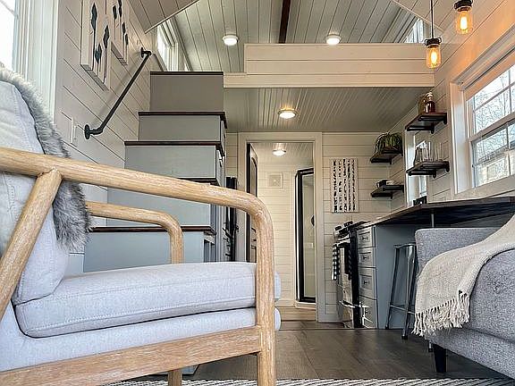 With high ceilings, white ship-lap interior, and large windows, this home offers lots of light and connection with the outdoors. Appliances are full-sized, with fridge, stackable W/D, and 5-burner gas range. Energy-efficient tankless water heater provides hot water on demand. Mini-split system needs repair or replacement. Safe radiator-style space heater and window air-conditioner currently provide climate control. Asking price reflects cost of replacing mini-split, if desired. Separate 8x10 shed can be used for storage or winterized for extra living space, office or workshop.
