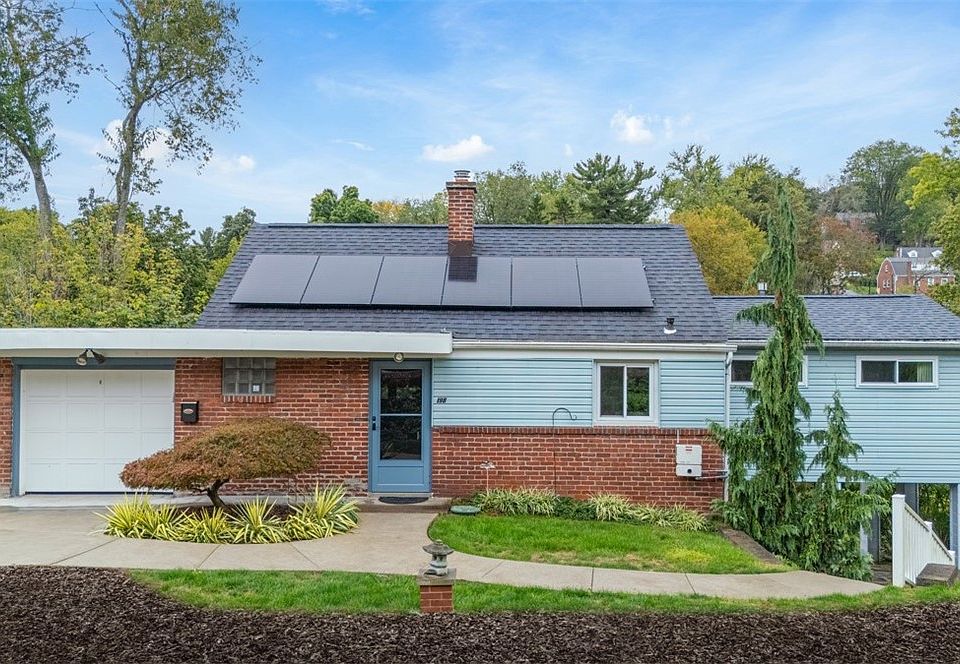 Welcome to this charming ranch home in Pleasant Hills featuring two spacious living areas and a convenient half bath. The galley kitchen offers ample storage and prep space, with a bright window overlooking the front yard. The open-concept living/dining area is perfect for entertaining. The lower level includes three comfortable bedrooms, a full bath, and a laundry room with access to the brick paver patio. Enjoy peace of mind with numerous updates: newer roof, windows, water heater, 2 furnaces, 2 central air units, and a newer concrete driveway and front walkway. The home is equipped with solar panels that cover electric costs—plus, the electric company pays the homeowner quarterly for unused energy. Outside, relax under the covered patio or enjoy the tiered backyard. An attached garage adds convenience. Located within walking distance to schools and restaurants, and just minutes to Route 51. Home warranty included!