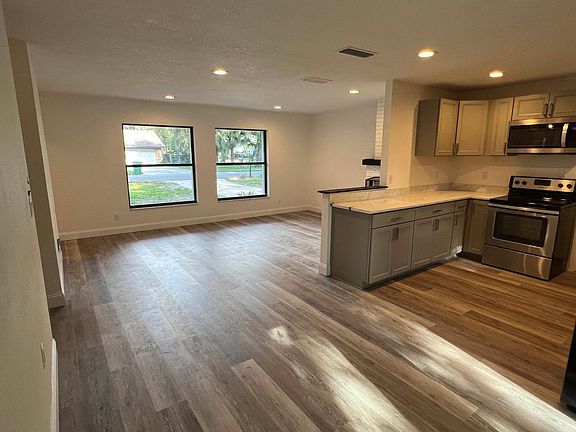 Recently renovated. Modern design. Fresh paint, luxury vinyl flooring, new walk-in shower, stainless appliances, new doors, all new lighting and ceiling fans throughout. Washer and dryer included.