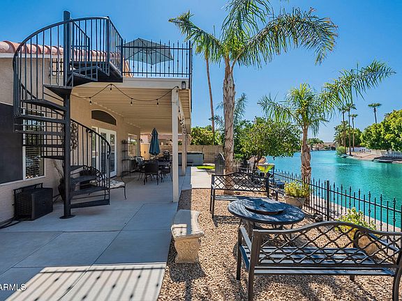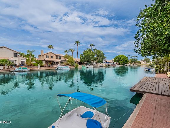 Outside shows JAW-DROPPING VIEWS! Sit lakeside or head straight to the lake for boating and fishing adventures. Paddle boat/kayaks included! Yard is beautiful and full of citrus trees. This is more than a home---it's a turnkey waterfront retreat. Inside you will love the great layout with an expansive open floor plan, soaring ceilings, and a bright, inviting atmosphere. The beautiful kitchen setup makes cooking/entertaining effortless while thoughtful updates and solid surface flooring add both style and function. With central vac and meticulously cared for, this home is completely move in ready! Enjoy the amazing downtown Gilbert with updated, plus old favorite culinary experiences and hangouts that create the unique Gilbert vibe.