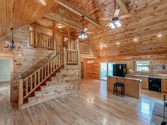 Welcome home to sweet perfection! You will love the feeling this home gives you while you unwind on the full length front porch while the deer graze in your front yard. Just inside the door, soaring vaulted wood beam ceilings draw your gaze up, while the open floorplan shows off the beautiful hardwood floors. The kitchen is amply set up for user friendly entertaining and has quick access to the back deck through the glass sliding doors. An oversized primary is on the main level, with attached en suite that showcases a separate shower and large jetted tub. Upstairs, you have a secondary bedroom that has its own private deck and a second bedroom that looks out over the back yard and nearby mountains. The lower level of the home has been recently finished to include a second primary, complete with large closet, a make up area, and an amazing bathroom with a stunning shower and loads of storage as well as access to the newly completed deck. Coosawattee River Resort is an ideal home for its ease of short term rentals, access to the fitness center, mini golf, tennis and basketball, three pools, hiking, dog parks, kids parks, and of course, the river for tubing, kayaking and fishing, with its close proximity to town, this is an amazing find!