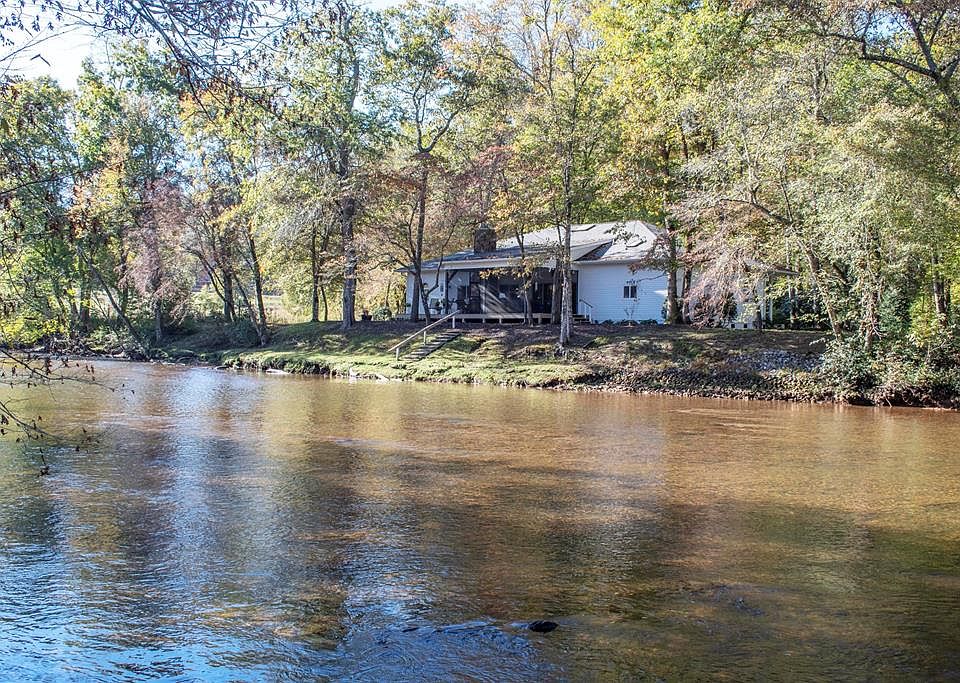 Let the sounds of the river soothe you! One level, easy living where you can trout fish right in your backyard! 235' of Hiwassee River frontage and a plantation style home featuring 10' ceilings, gleaming hardwood floors, and a floor to ceiling fieldstone gas log fireplace. Lots of windows, sliding doors and 3 skylights keep the house bright and allow river and park-like vistas. The completely remodeled kitchen offers tons of cabinet space including a cabinet pantry, granite countertops, double ovens and a 165-bottle wine cooler. Enjoy the huge primary suite with a large, remodeled en-suite bath and 2 walk in closets. Additional rooms include a formal dining room, 2 more bedrooms, an office, guest bathroom and laundry room. Relax on the 21'x15' screened porch overlooking the river, thoughtfully built with a ceiling high enough not to obstruct the river view from inside. The home has low maintenance construction, handicap access features, and no carpet! A detached, oversized 2-car garage gives you extra storage & workshop space. Step out of the rat race & watch the river roll by in this private, idyllic, park-like setting close to town. Full water filtration system and Fiber Optic Internet. The house has been meticulously maintained and thoughtfully updated.