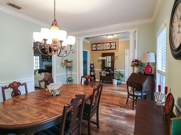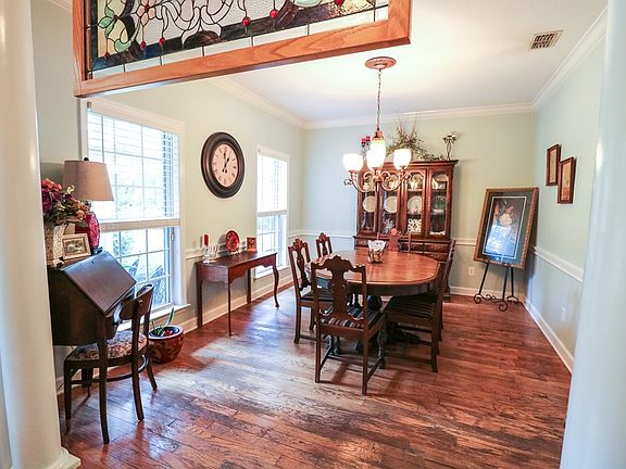 This three bedroom, two bath home boasts a bright and airy open floor plan, fresh paint in calming colors, and gorgeous hardwoods and ceramic tile throughout. The huge kitchen spills into the breakfast nook and living area with vaulted ceiling, but you've still got a perfectly spacious formal dining room for family dinners and holidays. The huge master bedroom is a true retreat with a sitting area and French doors out on to the patio, perfect for morning coffee and enjoying the wildlife this rural neighborhood offers. The light-filled master bathroom has plenty of room for two, with a garden tub, separate tiled shower, and double vanity, not to mention a huge walk-in closet. Just off the backdoor and master bedroom is a large, separate laundry room - the perfect location, a mudroom is great, but this way you're still able to close the door to hide your dirty laundry while still utilizing the backdoor and garage! On the other end of the house are two spacious bedrooms and shared bathroom. This house sits on just over an acre with nearby river access. Call an agent to schedule your showing today - this move-in ready home won't last long!