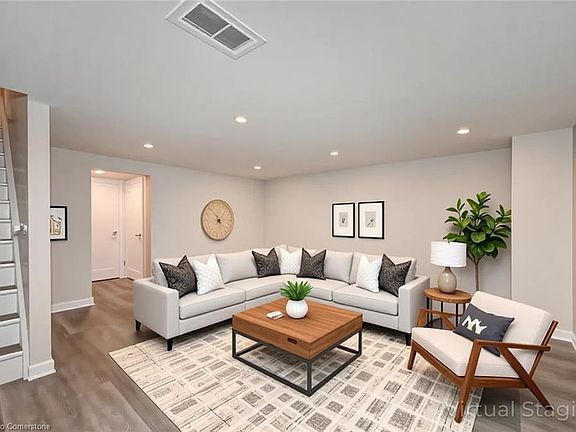 Renovated top to bottom in 2022, this stylish semi in the Cambridge Greenway-Chaplin neighborhood blends modern upgrades with a practical layout perfect for families and first-time buyers. Step inside to a bright main floor with new flooring and refinished hardwood throughout. The front living room offers a cozy space to unwind, while the renovated kitchen at the back is the heart of the home: extended white cabinetry, quartz countertops, glass backsplash, under-mount sink, pot lights, and stainless steel appliances. The dining area is open and connected, ideal for everyday living. Upstairs, three sunlit bedrooms feature new doors, trim, lighting, and custom closet organizers. The bathroom has been fully updated with quartz finishes and all-new fixtures fresh, polished, and move-in ready. The finished basement adds flexible living space with a rec room, second bathroom, laundry, and storage. Whether it's a home office, media room, or play area, there's room to make it yours. Outside, a fully fenced 150 deep backyard offers endless potential space for pets, gardens, or summer hangouts. The private driveway has parking for multiple vehicles.198 The Greenway is a turn-key home in a well-established community near schools, parks, shopping, and public transit. *Please note that some photos are virtually staged*