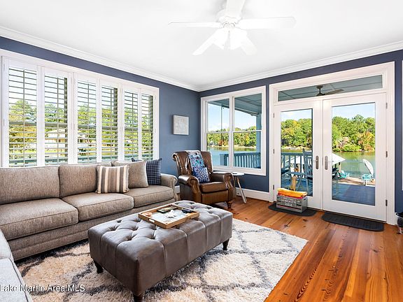 This is a stunning lake home with 4 bedrooms and 2.5 bathrooms, fully furnished with some personal items excluded. The main level features a spacious master suite with a beautiful master bath, a great room with a fireplace, an open kitchen and dining area, and stunning pine floors. The kitchen is equipped with stainless steel appliances and granite countertops. Additionally, there is an office, a half bath, and a laundry room on the main level. Upstairs, there are two large bedrooms, one smaller bedroom, and a full bathroom. The house is adorned with plantation shutters throughout. Outside there is a lakeside porch for entertaining and enjoying the view, as well as a boathouse. This lake house is truly a gem. Call your favorite Lake Martin Realtor today for your showing!!!
