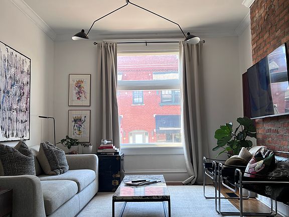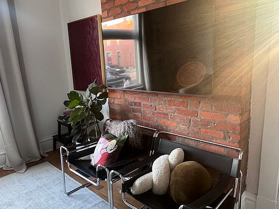 Wooden floors on all floors, gorgeous exposed brick walls, crown molding, and 10ft ceilings throughout. Super bright all day long with large new windows (conserves on bills). Soundproof windows in living room.