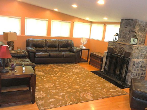 The property includes a dining area for formal meals and a den equipped with a pellet stove, offering an alternative heating source and a cozy retreat. Numerous updates have been implemented throughout the years, ensuring the home is move-in ready. A rear deck extends the living space outdoors, ideal for relaxation or entertaining.