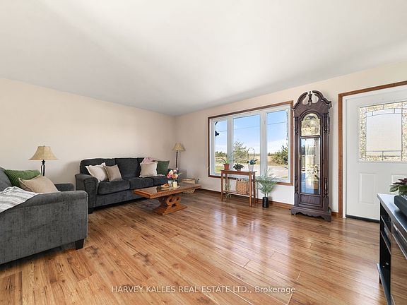 Perfectly placed between Lake Ontario & East Lake, and set on an expansive 6-acre property, this tidy bungalow offers the peace and space of country living with all the comforts of home. The easy-flow main floor welcomes you with a bright and spacious living room, an open kitchen and dining area ideal for gathering, and a convenient foyer connecting to the laundry room. With three comfortable bedrooms, a full bath, and a handy 2-piece semi-ensuite off the primary, the layout is designed for everyday ease. The full basement, bright and partially finished, offers incredible potential: whether you dream of a cozy family room, hobby space, or a home gym. Picture winter evenings spent around the pellet stove, and summer days outside extending onto the back deck, soaking in the southern sun and glowing sunsets. An attached garage and two storage sheds ensure plenty of room for vehicles, tools, and toys, while the expansive lot invites your imagination: gardens, play spaces, manicured lawn, or simply room to roam. There's even a full-sized soccer net ready for friendly matches! Updates such as a wired-in generator, metal roof, and new furnace make this such an easy move-in-ready option! A wonderful blend of comfort, potential, and outdoor living, this property is ready to welcome its next chapter.