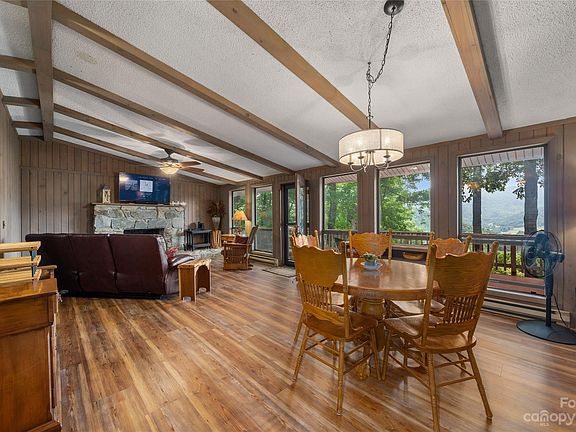 Enjoy uninterrupted VIEWS from every angle. Indulge in the quality of life this private mountain 'rentable' retreat offers on 1.7 acres. The upgraded granite-clad kitchen with stainless appliances connects to the great room which captivates with floor-to-ceiling windows that frame the stunning vistas, while the impressive solid rock fireplace with gas logs creates a cozy ambiance. The spacious, updated primary bath features granite counters, a separate shower and whirlpool, offering a haven of relaxation. Main level offers enhanced accessibility with two primary bedrooms with baths, solid T&G walls, chilling on the deck at 3400', and parking just 1 step from car to kitchen. Downstairs find a covered deck, casual billiards room, gas fireplace, full bath, laundry and two sleeping areas for guests. City water.. Wide Paved state road. Spectrum Cable Internet. Furnished for $1,000.. Maggie Valley - near Blue Ridge Parkway, Great Smokies, Asheville, Waynesville. Request Pre-Inspection Report