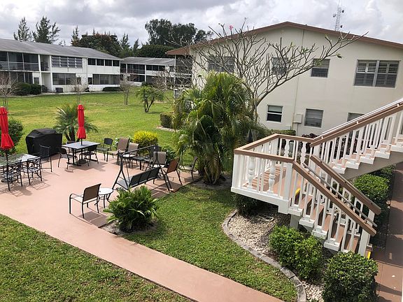Nicely renovated furnished 2 1/2 bath second floor corner unit in desirable Century Village community. Tiled throughout. Master bath fully updated with modern tile and glass shower doors. Tiled enclosed porch with garden view. outdoor picnic area for grilling and entertaining.