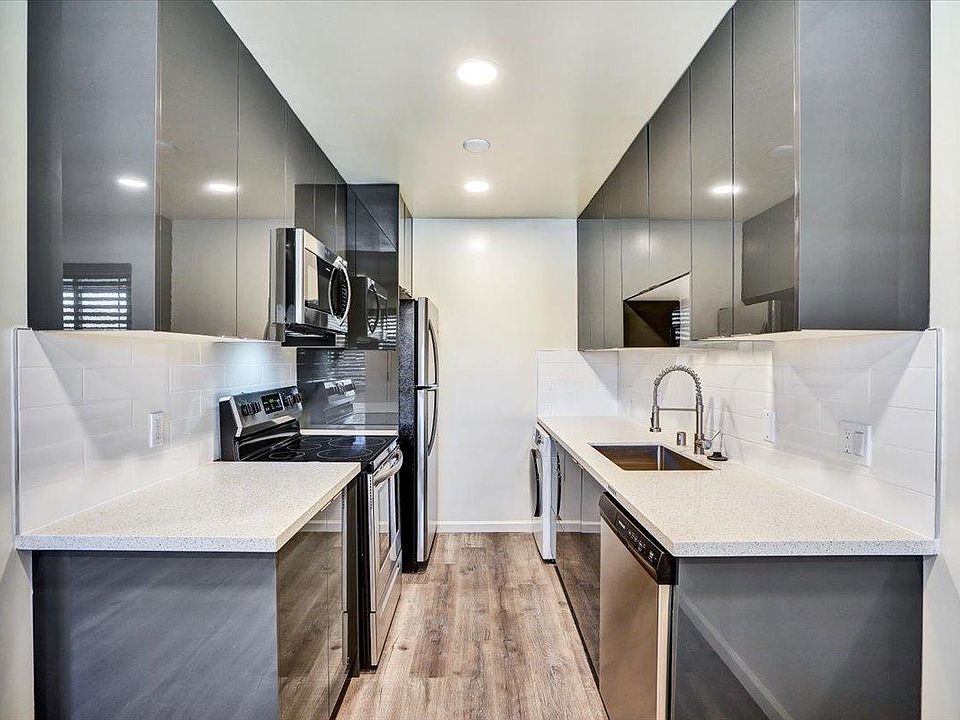 Currently offering 1 month free! COMPLETELY REMODELED! This newly remodeled apartment features a modern design, premium appliances, air conditioning, intercom entry, keyless entry, recessed lighting, smart bathroom mirror, dual pane windows, engineered wood floors, highly desirable finishes throughout, and in unit laundry. The bedroom is generous in size with ample closet space. A parking spot is included in your rent. Conveniently located in the Shoreline West neighborhood adjacent to Rengstorff Park and downtown Mountain View filled with endless restaurants, shops, and all other amenities. Close proximity to the Caltrain station, Googleplex, Meta and other start-ups and tech companies. Very easy access to both I-280 and US-101 freeways complete this ideally located home. FEATURES: Remodeled Kitchen Remodeled Bathroom Modern Design Throughout Air Conditioning Dishwasher Keyless Entry Smart Lighting /w Feit Electric Free Community Wi-Fi On site Manager In Unit Laundry Free parking We also have an option with going with Qira for your Security Deposit Alternative. $0 down for deposit, Low cost monthly fee instead.