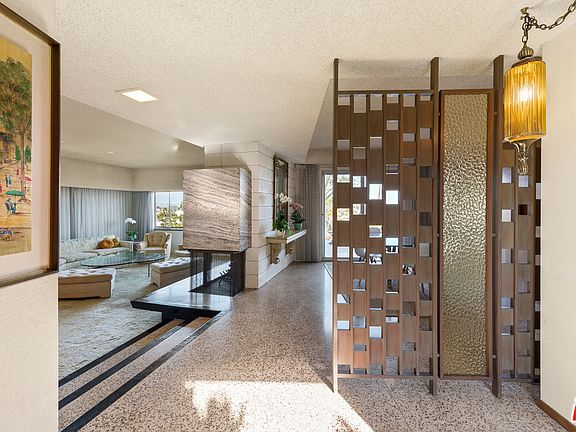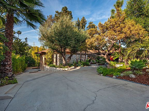 Wraparound decks, huge windows, and gorgeous views of Downtown L.A., the Hollywood sign, wooded canyons, and Griffith Observatory, make this Los Feliz mid-century modern a real gem. On the market for the first time ever, the home is located in a gated community at the end of a cul-de-sac. Sunken living room, w/ windows on two sides, has high ceilings, built-in shelves, & dramatic architectural fireplace finished with Italian stone. Formal dining room opens to a wraparound wood deck. Kitchen, w/ a pass-through window to the dining room, enjoys views of treetops, rooftops, & Downtown. Three bedrooms include owner's suite, w/ views of the Hollywood sign, lots of closets, and bathroom w/ sliders that open to a private patio. In addition to three wood decks, the home has a back lawn, two-car carport, & room for guest parking in the driveway. In a very desirable location, w/ the open-plan flow that characterizes mid-century design, this home is ideal for entertaining. Offers due 5/13 at noon
