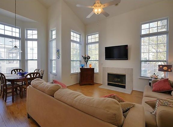 Beautiful OWNER OCCUPIED 2 bedroom, 2 bath corner condo with 1,158 sq ft. You will love the feel if this living space and vaulted ceilings give the room a spacious and open feel. Enjoy the look of laminate wood flooring throughout the main living areas and beautiful natural light filters in from the many windows. The modern kitchen has decorative pendant lighting and a door to the balcony. The spacious living room has a cozy fireplace, and a dining nook surrounded by a beautiful bay window. Enjoy the cozy master suite which has a tub with a shower, and a separate walk in shower. A second bedroom and bathroom offer additional space, and the bathroom opens to both the hallway and the bedroom. This building has undergone a renovation, and has a new roof, new windows, and new siding, The home is in a gated community and has a community pool, a fitness center and playground.