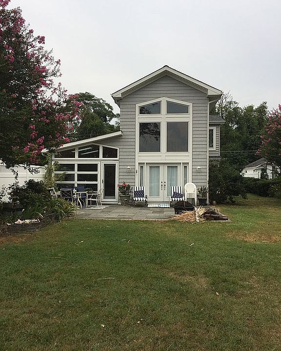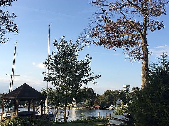 Large vaulted ceiling in living room. Hardwood floors throughout. Updated kitchen in 2021 with granite countertops and stainless appliances 2 fireplaces (gas and pellet ) Large, well landscaped yard with stone patio. Two deep water slips. 3 parking spaces plus garage and two story shed.