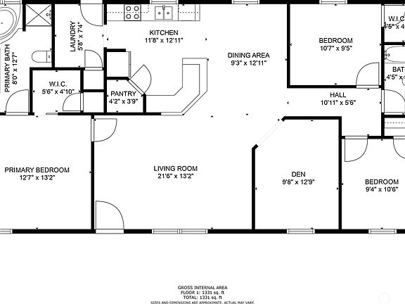 Meander down the quiet road to find this adorable manufactured home sitting on 6.5 acres of level, fenced land. This home has a nice open floor plan, with a split bedroom design. There are three bedrooms, plus a den that adjoins the spacious living room! The primary boasts a large en suite with dual vanities, tub and shower, walk in closet. The kitchen is equipped with plenty of counterspace, a walk in pantry and stainless steel appliances. There is a bunch of room to roam on this acreage, and plenty of storage for your tools or toys in the oversized detached two car garage.