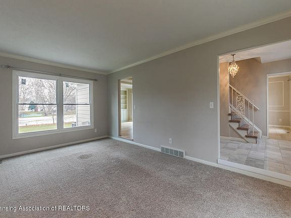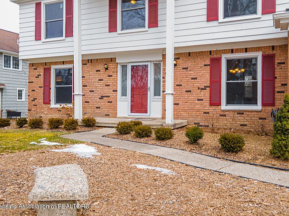 This stately two story home sits on a quiet cul-de-sac in Fox Hills. Step down from the foyer to the comfortably carpeted living room. Continue into the family room, boasting beamed ceilings & wood-burning brick fireplace with built-in shelves & a new sliding glass door. Wood floors flow through the family room, formal dining room & the kitchen, adorned with white cabinets, granite countertops, subway tiled backsplash, newer stainless steel appliances & eat-in dining. The primary bedroom has a huge walk-in closet & en-suite bathroom. Roof, floors, gutters, appliances (2018), water heater, furnace & a/c (2011), windows (2022). Moments to MSU, Eastwood, Frandor, Downtown Lansing & East Lansing.