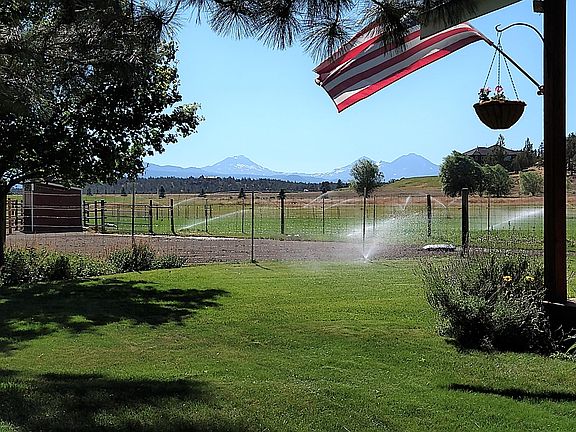Tumalo hobby farm on 4.55 acres with stunning CASCADE VIEWS! Property classified for farm use with 4.5 acres of TID irrigation rights, 2 ponds & underground sprinklers. Property is fenced/cross-fenced, horse setup w/3-stall barn, tack room, hay barn & loafing shed. SINGLE LEVEL home renovated in 2005 to add a 2nd primary bedroom & living room. Kitchen remodeled in 2020 to include knotty alder cabinets, quartz countertops, walk-in pantry, Ruvati farm sink, Bosch dishwasher, black stainless LG refrigerator & induction range. Large primary suite w/vaulted ceiling, bath w/tiled shower, tile counters & floors w/radiant heat, soaking tub & 2 sinks. Features include luxury vinyl wood floors, knotty alder solid wood doors/trim, solar tubes, ceiling fans, new carpet, newer furnace & heat pump. Mud/laundry room with sink & storage. 3-car tandem garage, 3rd bay used as workshop. Private well with filtration system & storage shed. Hay barn is perfect for RV/Coach storage. 2-year old roof and more!