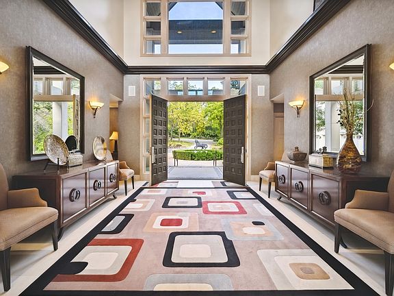 Glaciers End Estate, sophisticated, sleek, stunning. Noteworthy grand masterpiece of extraordinary quality construction & design. 20 wooded rolling acres, winding paved trails, stocked pond, waterfall and pool. Resort style living at it's finest. Perfect for corporate events. All in suite bedrooms+2nd living quarters. Well appointed European gourmet kitchen complemented by 3 additional kitchens. Two elevators. Helipad option. One of a kind property!