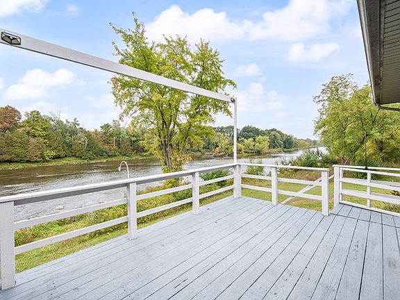 One of the best kept secrets in Big Rapids! Take a drive down Davison Drive, a quiet and private riverside drive just a couple minutes north of Big Rapids. With over 300 feet of excellent Muskegon River frontage, and unobstructed elevated views directly at the water from every angle of the property, you will fall in love with the setting and the potential the moment you pull in! The large ranch home is well built, and you will feel like you can touch the water from the large elevated back deck. A full walk-out basement provides tons of potential and storage and an attached 2 car and BONUS 2+ car garage give room to store your canoes and kayaks. You will not want to leave the 4 seasons room just off of the kitchen and dining room area, an excellent place to watch the river move by with a drink in your hand. The enormous back and front yards make this a rare find with nearly every inch of land ready for use. Come and take a tour!
