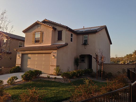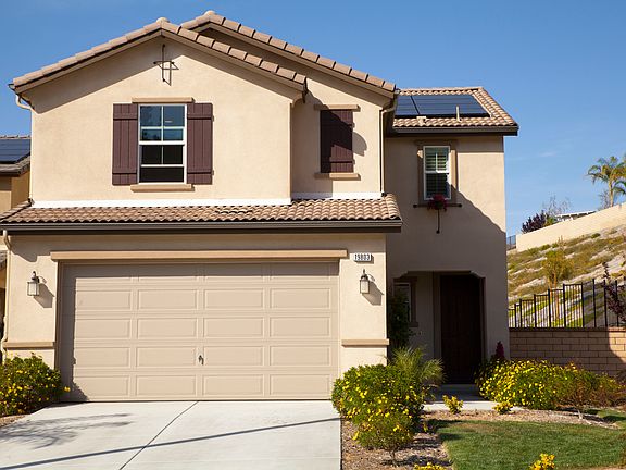 Beautiful home in Plum Canyon newest community, Echo Pointe. Spacious open floor plan of living space, including 3 bedrooms, a loft, 2.5 baths and upstairs laundry room. Home is situated at the end of a cul-de-sac corner. State of the art features including Solar Panels (save money on your electric bill), tankless water heater, fire sprinklers, double pained windows and radiant roof barrier. Backyard is dirt and ready for your imagination to create your own custom yard. Kitchen has granite counter tops, white cabinetry, huge pantry and stainless steel appliances. Cook top stove and oven with microwave and refrigerator included in sale! Master bedroom bath has separate bath and tub. Master walking closest with organizer. 1st floor with hardwood flooring. Crown molding. Garage has epoxy painted flooring. Don't miss this amazing opportunity to own a new home in Echo Pointe! Contact Raffi at (818) 859-3187 for any additional questions