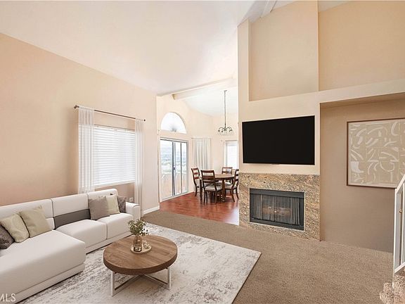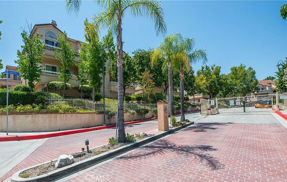 Located in a beautiful pocket of Newhall, this gated, top floor corner condo offers a peaceful retreat in a serene neighborhood. The spacious 3 bedroom, 2 bath layout is move-in ready! Highlights include a modern kitchen with quartz countertops, a cozy fireplace in the living room, sweeping views of the hills and mountains, and a private en suite primary bedroom. A versatile loft easily accessible by staircase which features a wet bar. Enjoy the convenience of in unit laundry, generous storage throughout, and a refreshing cross breeze. The well maintained community pool is just steps away, and the neighborhood is perfect for scenic walks and easy living.