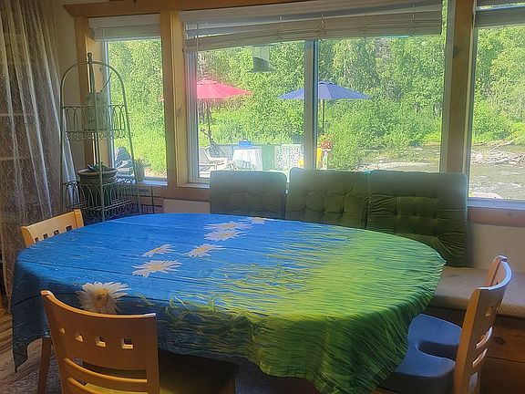 A one of a kind 3 bedroom 1 1/2 bath house with Willow Creek frontage. Come fish from your deck or just relax and listen to river music while lounging on your hammock. Then take a dip in the hot tub and enjoy an amazing sunset. New soft water system. Remodeled kitchen including double oven, dishwasher, large refrigerator, separate beverage cooler and a sit at bar. Stacked Washer and dryer in large laundry room which is big enough for an extra bed. Laminate flooring throughout. Upstairs Master Bedroom has an attached office/crafts room. Extra large garage/shop.