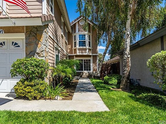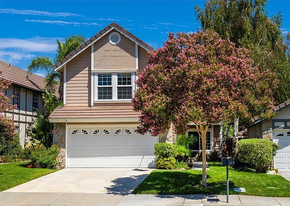 American Beauty Classic with 400+ sq. ft. custom master suite addition...ONE of a kind! This distinctive home boasts the luxurious addition of a spacious private 2nd master bedroom retreat with walk in closet and en-suite bath tastefully appointed with a furniture style double sink vanity, separate staircase and newer A/C. Lots of space to entertain in this light and bright open floorplan, including a formal living room with vaulted ceilings, gas fireplace, adjacent dining room and much more. The kitchen offers a breakfast bar, large eating area and is open to the generously sized family room with French doors leading to the charming backyard. Professionally installed artificial turf and lighting in this drought friendly, low maintenance back yard that makes it the perfect place to entertain or just relax. The 2nd staircase leads to another large master bedroom also with an en-suite bath, two more bedrooms and a full bath. Additional features include ceiling fans, recessed lighting and textured ceilings throughout, laminate flooring upstairs, new carpet and laminate flooring downstairs, copper plumbing, plenty of storage cabinets in garage. This well-maintained home is a wonderful combination of warmth and charm that makes it a must see! HOA includes front yard landscaping, water and maintenance, 4 pools and spas, 4 Tennis Cts, 1 Basketball/sports Ct, Children's play areas. Close to shopping, entertainment, award-winning schools, parks, freeways and Metrolink. NO-MELLO ROOS!