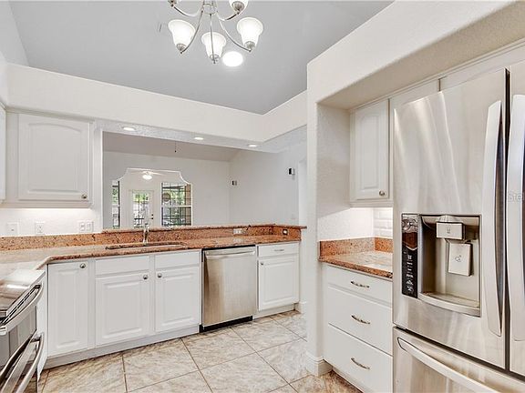 One of the gorgeous homes in The Vineyards, located close to downtown, nestled between Lake Gertrude and Lake Dora. This lovely neighborhood offers complete lawn care for carefree living. This home is so well maintained and freshly painted, it's move-in read! There are arched doorways with nice architectural detail in the design. Spilt plan and indoor laundry. You'll enjoy the contemporary and updated kitchen features granite kitchen and stainless steel appliances; including double ovens and quality cabinetry. There is flex space with a lovely window seat under a bay window that can be used as formal dining, office or even convert to a 3rd bedroom. The master bedroom has a huge walk in closet and views of the back private courtyard and personal-sized, solar heated pool. There is also a nicely finished screened lanai to enjoy your morning coffee or evening cocktails The 2 car garage offers a roll down screen. Perfectly situated directly across from a wooded area for extra peacefulness. The community also has its own walking path to Lake Dora with plans for building a dock.