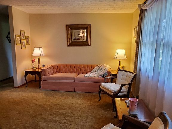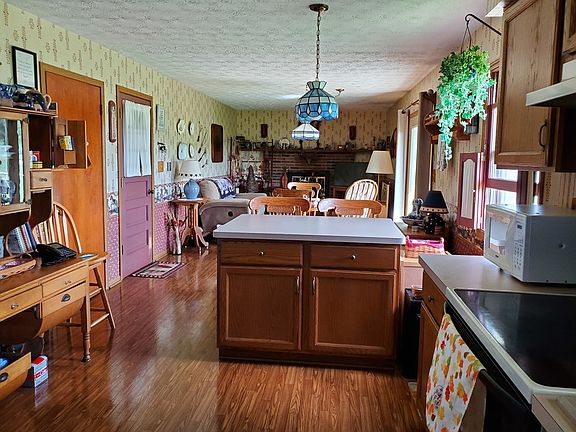Great 3 bedroom 1.5 bath home on large lot . Basement is partial finished and one end looks like entrance to country store. large living room. Family room kitchen combination with fireplace. Bathroom updated. Kitchen has lots of oak cabinets and a Island separating eating area and family room. French door out to patio and partial fenced in area off kitchen. Hot water tank rented 19.00 a month