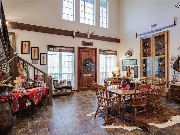 If you are looking for your dream Farm house, look no more! This beautiful home was custom built in 2008 and features 3 bedrooms, a loft, media/theatre room, 3 1/2 baths, detached heated and cooled garage, carport, storage shed and 2400 workshop. Property sits on 13.45 acres where turkey and deer are seen throughout the year. Beautiful sunrises and sunsets are seen from over 1300 sq ft of covered porches with stained concrete. New roof in June of 2019. Spray foam and tons of walk in attic storage.