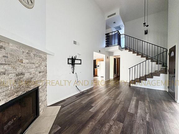 Don't miss out on this one! Gorgeous 3bed/2.5bath in the quiet tucked away Pantano Townhome community. This home has it all with airy open living area with 17' ceilings and fire place to cozy up around during cool evenings. Spacious kitchen with plenty of cabinet and counter space and dining area. Split bedroom floor plan with one bedroom downstairs and two upstairs. Guest bedrooms have their own private patios! Primary suite is complete with large walk in closet and gorgeous bathroom with a walk-in shower! Back yard includes patio, and low maintenance gravel. Washer and Dryer included as convenience. Two car garage! Home is located close to the community swimming pool, tennis and basketball courts. Pet Friendly! Hurry before it's gone!