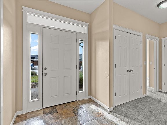 Meticulously cared for 3-bed, 2-bath single-level home w/ 1,800 sqft of open living space (exterior paint 2025). Great room w/ vaulted ceilings, gas fireplace, ceiling fan, and updated carpet. The spacious kitchen w/ alder cabinets, a gas range, pantry, and stainless appliances including a new microwave & updated sink. Maple floors and a slate-tile entry lead to a thoughtful layout with 9-ft ceilings, recessed lighting, and abundant storage throughout—including two oversized hallway closets and a laundry room w/ built-in cabinetry. The primary suite is a private retreat w/ vaulted ceilings, a walk-in closet, and an ensuite bath featuring a soaking tub, tiled shower, double vanity, and enclosed toilet. Outside, enjoy a fully fenced backyard with sprinklers, side gate, and manicured landscaping. The tandem 3-car garage offers attic storage, side man door, keyless entry, and a new smart garage opener, added water spigot, newer water heater, and regularly serviced HVAC.