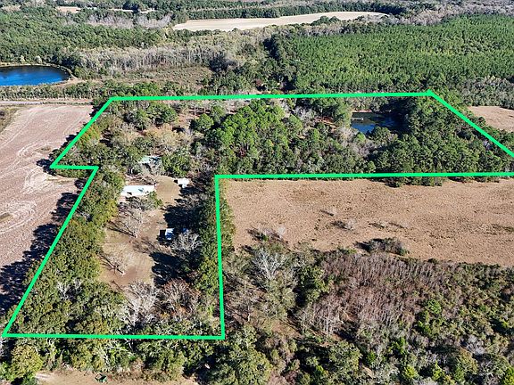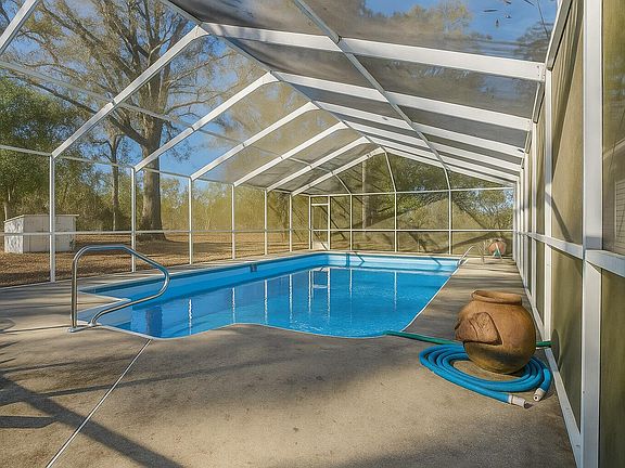 4BR, 2.5BA with home office/game room sits on 22 acres! Property has 2 ponds, ideal for fishing or just peaceful enjoyment. Multiple utility buildings provide endless storage and workshop possibilities, including a substantial72x32 barn and various outbuildings ranging from 12x8 to 24x12. The saltwater pool features a generous 50x30 screened enclosure. Inside, beautiful bamboo flooring through the living and dining areas with a large gas fireplace anchoring the main living space. The mature landscape includes productive pecan trees, fig trees, and grape vines that practically turn your yard into a mini orchard. A whole-house Generac generator ensures you'll never be without power. This is best of country living located just over the Florida line for easy access. Home is move in ready.
