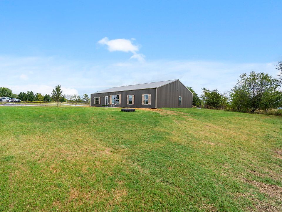 Welcome to country living! This 5-bedroom, 2-bath barndominium-style home (built in 2017) sits on 5 fenced acres at the end of a private circle drive. This home is perfect for your horses and livestock! Featuring a metal roof, fresh interior paint, brand-new Luxury Vinyl Plank flooring throughout, Brand NEW carpet in all the bedrooms, trim, and an updated kitchen with white cabinets, granite countertops, and new Whirlpool stainless appliances(all new upgrades were added in 2024 and 2025). The spacious open layout includes a huge primary suite with a big walk-in closet and a split-bedroom design. Enjoy peaceful mornings with coffee on the porch as you watch deer grazing in the field, or unwind on the large back deck with Bbq's with the family. This home also includes a loafing shed--perfect for livestock or hobby farming. Beautiful modern updates meet serene country living--move-in ready and waiting for you for the Holidays!
