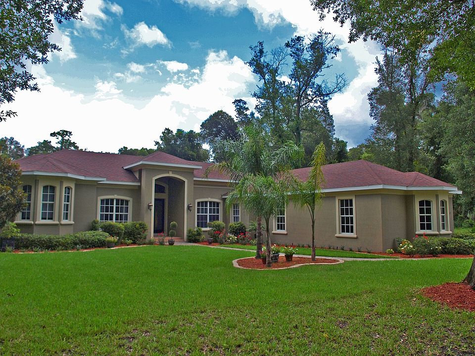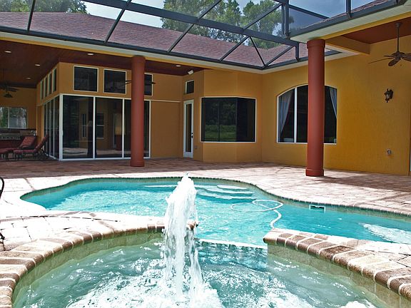 ELEGANT & DESIGNED FOR FLORIDA LIVING THIS HOME IS A KNOCKOUT INSIDE & OUT! 4 bedrooms + office & 4 baths on 2.5 acres in desirable gated Glenwood Oaks this custom home was designed by Tom Moscoe, one of the area's top builders. Exquisite detailing in this dynamic 3-way split floorplan provides privacy for everyone in the family and perfect for guests. There is a separate office, formal living & dining and a huge family room with 21' disappearing glass wall opening to the 70' lanai & pool. With the outdoor kitchen and gas heated pool & spa you'll enjoy the lanai living area year around. The stunning kitchen has gorgeous custom, self closing cabinetry, granite counters & top of the line appliances including a Viking gas stove. This floorplan has a wonderful flow between all the living areas with an entertainment bar & wine refrigerator between the living, dining & kitchen-ideal for parties & buffets. The flooring is gorgeous-travertine throughout including the master & all baths with wood flooring in the office & guest suite. The master suite's sitting area opens to the pool and has a luxurious bath with jetted tub & separate shower. Some of the amenities that make this home special include crown moldings, 8' doors throughout including closets, lots of windows capturing the views and letting in lots of light, oversized 3 car garage, new A/C in 2012, prewired for CAT 5 & termite Bond. There is propane for the stove, dryer, grill, hot water heater, pool & spa and fireplace which