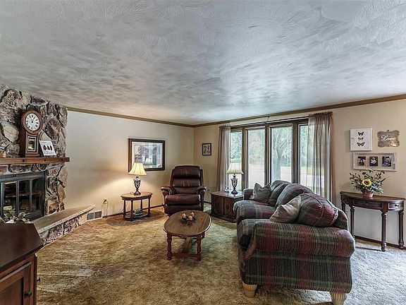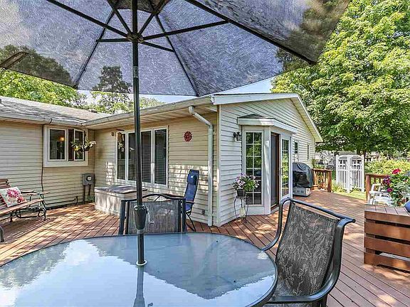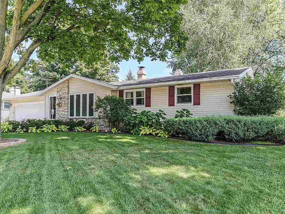 Sought after ranch in southwest Green Bay! Well cared for 3 BR, 2.5 BA w/double deep garage stall! Home has both living room w/corner fireplace, PLUS family room w/vaulted beamed ceiling. Beautiful built-in cabinetry leads to large wraparound deck w/backyard privacy! Modern painted kitchen cabinets w/newer hardware. Finished lower level w/bar and rec room, plus a full bath. Nice workshop area includes built-in workbench. Pella triple glazed casement windows w/blinds inside panes, updated doors. Situated on a beautiful wooded lot across from He Nis Ra park. Hurry! This one won't last long!