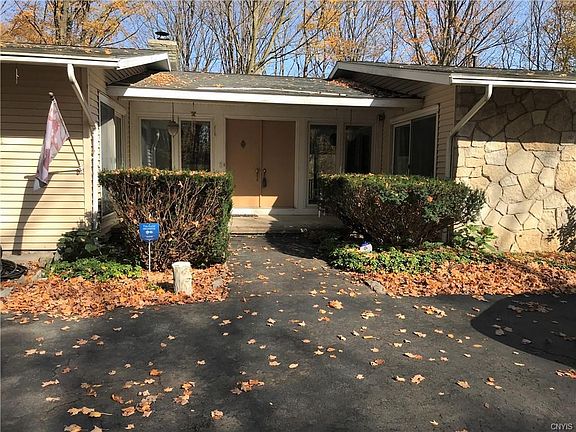 Hidden in the woods, this very large ranch sits on 5.7 private acres. Meander down the paved driveway where it turns into a circular drive. As you come in through the double doors you are greeted by a huge living room offering expansive views and decks running the full width of the house. A wood burning fireplace surrounded by stone warms the living room. Huge kitchen offers tons of storage and a wall of windows. There are 3 bedrooms on the first floor all with sliders to the decks outside. Storage abounds including a walk in closet in the master suite. The walk out basement also has a full deck and sliders to the outside. There is a bedroom and full bath in the lower level as well as a huge family room with wood burning fireplace. The house is set up for a generator. This well maintained home offers a radon mitigation system in place, updated electric. 2 year old roof and gutters, laundry hookup on the first floor as well as the basement, security system and privacy in a peaceful setting. Furnace serviced on 10/23 by Charles Heating. Tax records do not reflect lower level walk out space. RPR sq. ft. is 3951. Huge finished bsmnt.