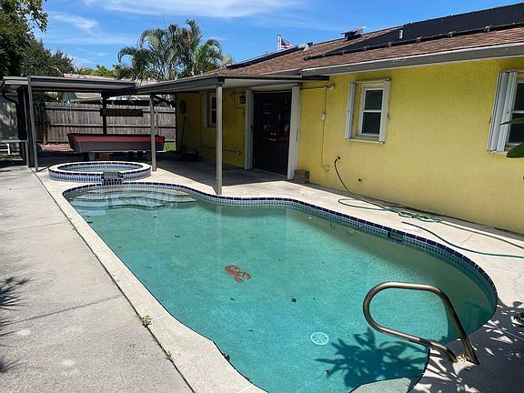 *******3 BEDROOM 2 BATH POOL HOME WITH 2 CAR GARAGE ******LIST PRICE ADJUSTMENT.HUGE SCREENED IN FRONT PORCH WITH NEWER DOUBLE PANE WINDOWS AND ACCORDIAN SHUTTERS FOR THOSE STORMS AND INSURANCE DISCOUNTS.POOL IS HEATED BY SOLAR PANELS,AND SPA IS SEPARATE AND BACKYARD IS SET FOR ENTERTAINING AND EVEN COMES EQUIPPED WITH A POOL TABLE TO BOOT.THE BACK YARD ALSO HAS A 2 YEAR OLD HUGE SHED FOR ANY OVERFLOW YOU MAY HAVE.THE HOME EVEN COMES WITH LEAF FILTER WHAT MORE COULD YOU WANT.