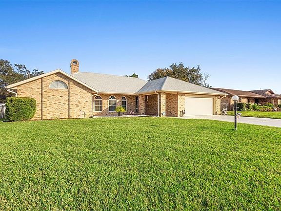 This beautiful 3 bedroom, 2 bath home sitting pretty on nearly a 1/4 acre complete with updates galor, fanced in yard and a sparkling self cleaning pool! Walk through the foyer into the expansive living room with a stately brick fireplace that can be electric or wood burning. With both a formal dining room with chair rail and a fully appointed kitchen with wood cabinets and a eat in kitchen with a bar, it is perfect for all of your entertainment needs. Spacious first floor primary bedroom with en suite as well as two other well appointed bedrooms perfect for guests or flex spaces. Looking for Florida living, look no further than the huge screened room overlooking the gleaming pool in the huge back yard perfect for outdoor living. Updates abound: new roof 2020, new windows, doors, electric in the last 5 years. This Deltona home is only missing one thing - you! So reach out today for your own private showing!