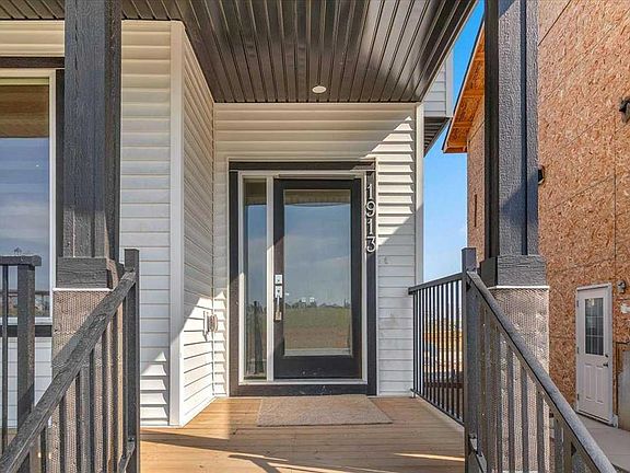 Experience the beauty of this custom-crafted home set in the peaceful surroundings of Crossfield. This pre-construction laned home offers 1,443 square feet of well-designed space across two stories, with 9FT ceilings on every level to enhance the open feel. The home includes a front porch and a backyard deck, ideal for spending time outdoors or hosting family gatherings. Inside, the main floor’s open concept design blends style with functionality. The kitchen features a breakfast bar, quartz countertops, stainless steel appliances, and textured cabinets. Natural light fills the great room, which includes a linear electric fireplace for added comfort. Durable vinyl plank (LVP) flooring, maple accents, and black exterior dual-pane windows provide a modern finish throughout the home. A conveniently located 2-piece powder room completes the main floor. Upstairs, the primary suite includes a 4-piece ensuite and a walk-in closet. Two additional bedrooms provide space for family or guests. A full bathroom and a laundry room with a sink add everyday convenience. Additional features include a double detached garage, fully landscaped backyard, and a roughed-in basement with a separate side entrance, offering potential for future development. Custom finishing options are also available. Located in Crossfield’s Iron Landing community, this home is near parks, playgrounds, shops, dining, and top-rated schools like Crossfield Elementary and W.G. Murdoch School. It’s under 10 minutes to Airdrie, 25 minutes to Calgary, and close to Highway 2 for commuting. Photos are from a previous build; Don’t wait—reach out to make this incredible property yours today!