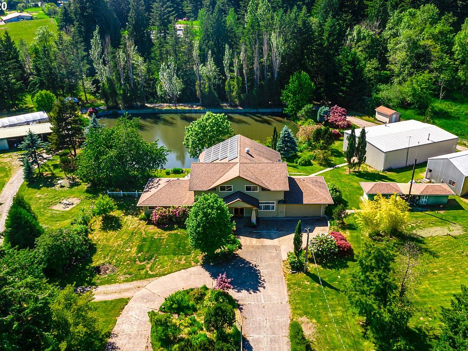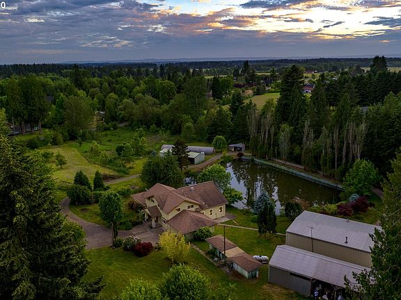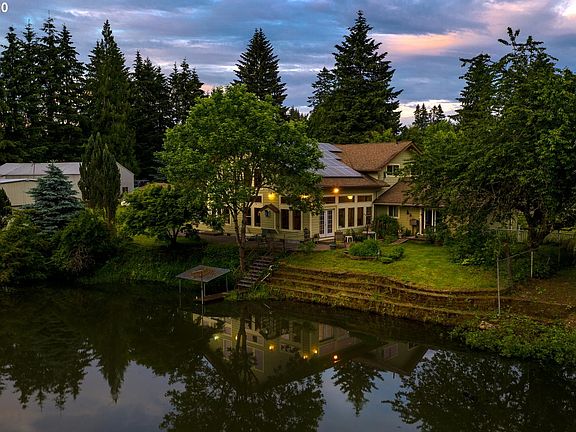 Craftsman-style home w/ extensive interior remodel using mostly reclaimed materials on acreage with pond. Open-plan central living area with living and dining space, chefs Kitchen, hardwood floors, high vaulted ceilings & huge windows for incredible light. Spacious Master Suite w/ French doors to outdoor living area, 2 addt'l BRs. One is suite w/ exterior access. Open loft Bonus area on upper. Multiple outbuildings for farm and shop equipment, studio space, car collections. Highly efficient.