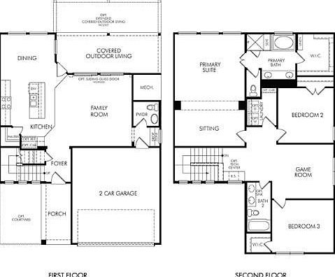 Large covered patioFirst floor family roomIsland kitchenGame roomSitting areaEnticing primary suite