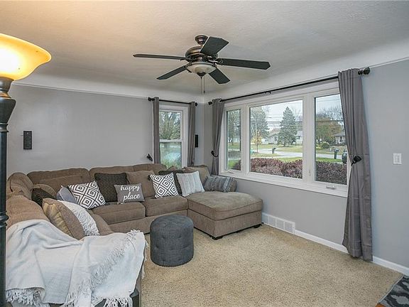 Clean & Cozy Ranch situated on a .72 acre property in Strongsville. This move-in-ready home boasts neutral paint, plush carpeting & updated flooring throughout. The lovely living room w/ new picture window leads to the remodeled eat-in kitchen(2019) w/ new flooring, beautiful countertops, included appliances, crisp white cabinetry & subway tile backsplash. The dining space boasts a new sliding door out to the gorgeous & sprawling, fully fenced-in backyard w/ deck, covered breezeway, patio area & fire pit to enjoy! Back inside are 3 comfortable bedrooms & an updated full bath w/ convenient double sink vanity(2019). Plenty of storage space is found in the full basement w/ laundry area & rec room and the 2 car garage w/ attic space(2016) & new garage door. Hot Water Tank(2015), A/C(2009) & 1 year home warranty provided for peace of mind. A great place to call home!